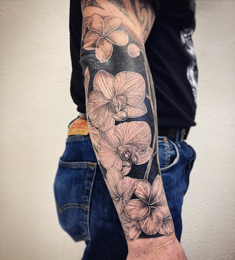 Tatouant depuis 2009, je travaille de manière polyvalente et explore volontiers vos thématiques dans des styles variés. Mes préférences se portent sur les mondes animalier, végétal, floral et ornemental. Je travaille aussi les portraits et plus largement les personnages, j'aime également les motifs ayant trait à l'univers amérindien ou chamanique.